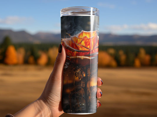Deadpan Couture 20 oz. Stainless Steel Skinny Tumbler – Flame & Rose Edition